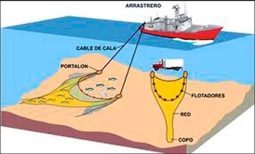 Remolcadas las enormes redes por barcos que habitualmente sobrepasan la potencia reglamentaria, armados de cadenas y pesadas puertas de metal que mantienen el arte abierto mientras aran el fondo del mar y crean un efecto “embudo” hacia la red, los aparejos de arrastre crean graves impactos no sólo sobre las poblaciones de peces que pretenden capturar, sino en decenas de otras especies, tanto de peces como de crustáceos y moluscos.